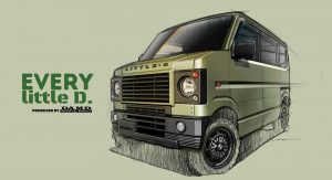Japanese tuner DAMD, known for converting the Suzuki Jimny to a Defender mini-lookalike, announced a similar treatment for the Suzuki Every van. The “little D.” kit will be available from early summer 2022 and was previewed in a set of pictures alongside the “Nomad” for the Suzuki Spacia Gear.
