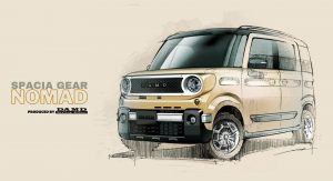 The extra parts enhance the SUV-inspired look of the Spacia Gear, with the underpinnings remaining virtually unchanged. In its most powerful guise, the hybrid turbocharged 658 cc engine produces 63 hp (47 kW / 64 PS) and sends power to all four wheels through a CVT gearbox. The “Nomad” will be available for sale starting from March 2022.