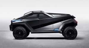 Other key design highlights of the vehicle include the flared wheel arches, the unique positioning of the doors, and the two solar awnings that can open up. The Thundertruck could also be offered as a 6×6.