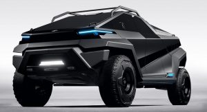 The first thing that catches the eye with the Thundertruck is its intriguing shape that makes even the Tesla Cybertruck seem restrained. There are virtually no front or rear overhangs and there is also no traditional hood with the windshield stretching right to the front of the truck. Elsewhere, the Thundertruck has been imagined with LED headlights and sits on a set of off-road wheels and tires.