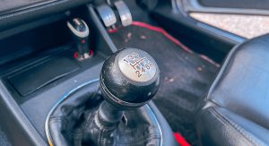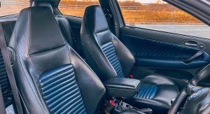 It really is a lovely place to be; look at that sculpted dash binnacle, the plush two-tone leather seats and a just-rightly sized steering wheel. This car’s owner has prioritized mechanics rather than aesthetics as he nears 90,000 miles (144,840 km) after five years’ ownership, but it still feels very much the mini-Maserati, only with far more leg and arm space than any Modena machine of the same era.